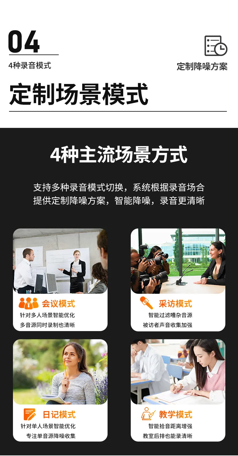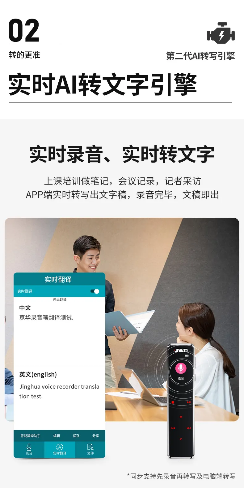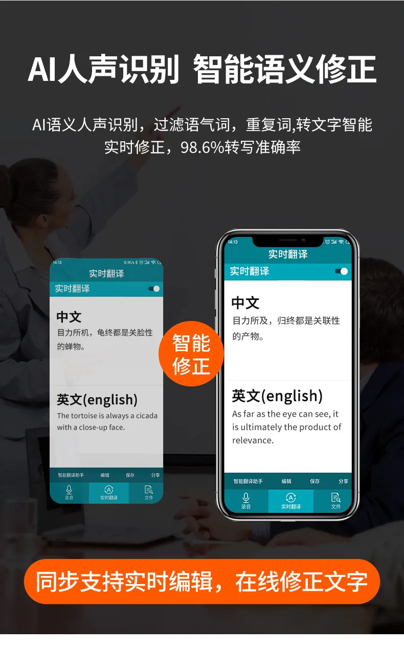 高清原聲音質(zhì),AI降噪體驗(yàn),拾音速記轉(zhuǎn)寫(xiě),25國(guó)同聲轉(zhuǎn)譯,支持邊充邊錄