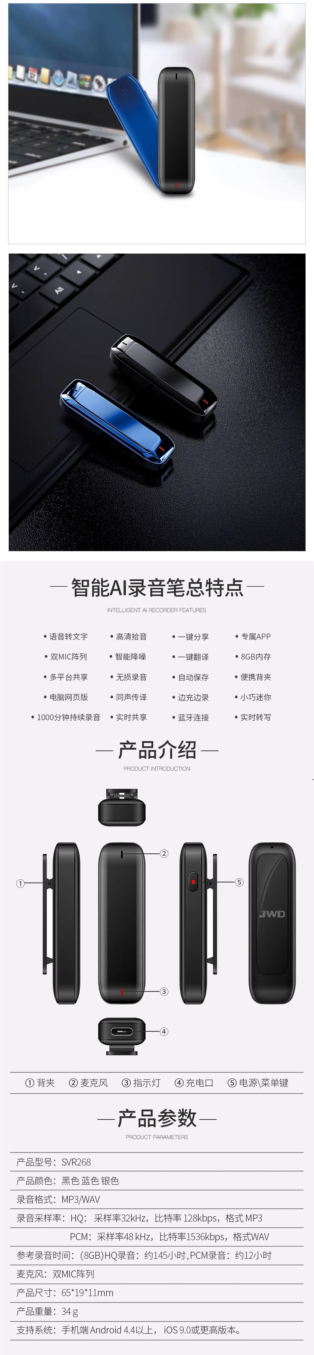 智能APP轉(zhuǎn)寫轉(zhuǎn)譯,智能降噪無損錄音,雙麥克風(fēng)陣列,支持多平臺(tái)共享
