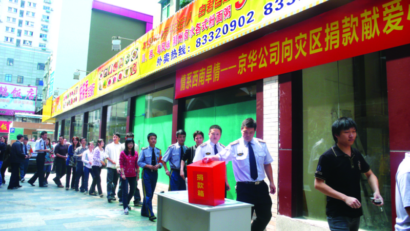 公司特困職工陳招娣從公司宣傳欄了解到西南旱災(zāi)后,拿出30元投入捐款箱;來自貴州的職工代表也將他們平時省吃儉用的錢捐了出來:“家鄉(xiāng)正在受災(zāi),我們應(yīng)該盡一份自己的力量。”