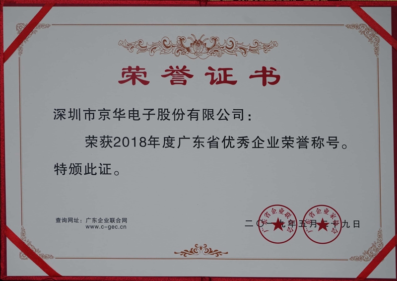 2019年5月29日,由廣東省企業(yè)聯(lián)合會(huì)、廣東省企業(yè)家協(xié)會(huì)牽頭主辦的“第25屆廣東省企業(yè)家活動(dòng)日暨企業(yè)誠(chéng)信建設(shè)大會(huì)”在廣州白云國(guó)際會(huì)議中心勝利舉行,京華電子喜獲2018年廣東省優(yōu)秀企業(yè)榮譽(yù)稱(chēng)號(hào)。