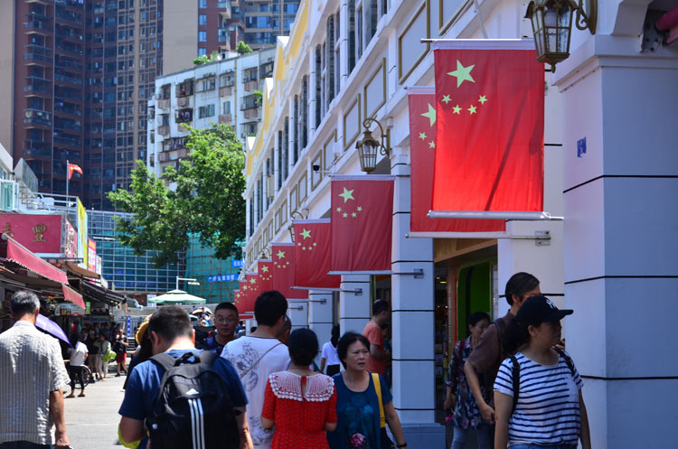 經(jīng)過(guò)口岸邊檢檢查完畢后,才算是真正進(jìn)入到中英街景區(qū)內(nèi)。一條窄小細(xì)長(zhǎng)的小巷指引著前來(lái)觀光的客人大步邁進(jìn),這就是著名的“一街兩制”的中英街。細(xì)細(xì)品味街區(qū)的獨(dú)特文化,一點(diǎn)點(diǎn)揭開(kāi)它的神秘面紗。小巷的一邊是香港生活的寫(xiě)照,繁體字的街邊店鋪和建筑物把香港的文化和中英街回歸祖國(guó)前的歷史面貌展現(xiàn)得淋漓盡致。小巷的另一邊,則完全是中國(guó)元素的印記,一排排的小樓房整齊劃一地漆上了干凈、整潔的大白漆,墻上插滿了一面面的中國(guó)國(guó)旗,顯得如此的昂揚(yáng)、豪氣。