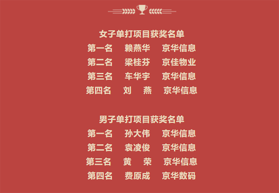 京華公司工會(huì)主席張光奎為男子單打獲獎(jiǎng)選手頒獎(jiǎng)