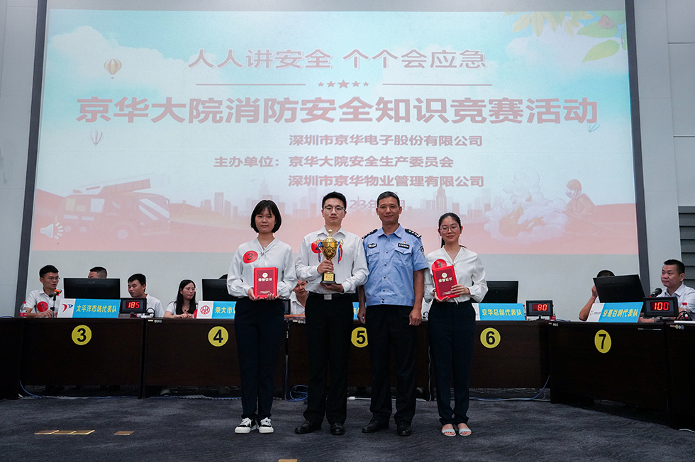 為進(jìn)一步掌握安全生產(chǎn)常識(shí),增強(qiáng)消防安全意識(shí),提高消防安全防范能力,認(rèn)真貫徹落實(shí)2023年“安全生產(chǎn)月”活動(dòng),6月21日下午,京華公司、京華大院安全生產(chǎn)委員會(huì),京華物業(yè)公司聯(lián)合舉辦消防安全知識(shí)競(jìng)賽活動(dòng)。京華公司黨委書(shū)記、總經(jīng)理王國(guó)慶,京華公司副總經(jīng)理、京華物業(yè)總經(jīng)理滕立軍,安全生產(chǎn)辦公室成員和京華大院各參賽隊(duì)伍及其領(lǐng)導(dǎo)出席了本次活動(dòng)。活動(dòng)特邀評(píng)委深圳市福田區(qū)安委辦副主任、應(yīng)急管理局副局長(zhǎng)張志云,華強(qiáng)北街道應(yīng)急辦副主任唐根華,華強(qiáng)北派出所副所長(zhǎng)李斌,華強(qiáng)北派出所福強(qiáng)警區(qū)警長(zhǎng)曾凱蒞臨現(xiàn)場(chǎng)指導(dǎo)。