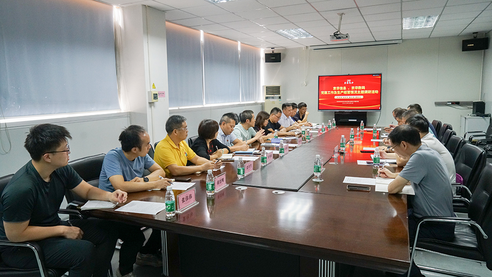 7月7日,京華公司黨委書記、總經(jīng)理王國慶同志到京華信息和京華數(shù)碼兩家公司調(diào)研指導(dǎo),聽取黨建工作及生產(chǎn)經(jīng)營情況匯報并舉行交流座談會。
