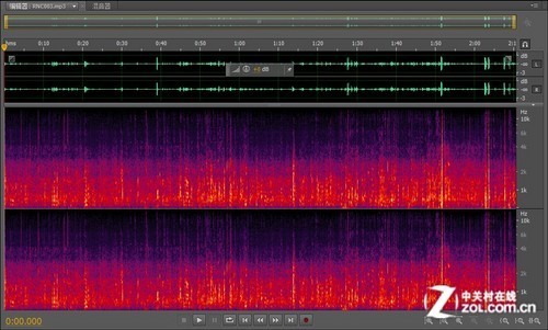 試聽錄音文件,發(fā)現(xiàn)京華HQ-90在錄音降噪模式下還是非常完整的還原整個環(huán)境的聲音,遠處兩位同事的交談內(nèi)容也能基本清晰的聽出。從能量圖中可以看出,錄音能量還是集中分布在靠近話筒的主聲音,沒有過多的環(huán)境底噪,而音量相對較高的談話聲音,還是可以完整記錄的。